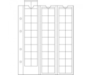 Лист изготовлен из пленки повышенной прозрачности. 24 ячейки с клапаном для монет диаметром до 35 мм. Наружный формат 200x250 мм. Подходит к папкам-переплётам Optima.