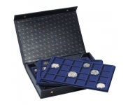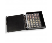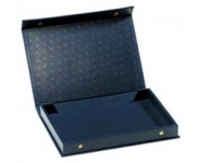 Папка изготовлена из высококачественной искусственной кожи тёмно-синего цвета с узорным тиснением на крышке. Содержит два планшета TAB 24 (24 ячейки 47x47 мм) и два планшета TAB 40 (40 ячеек 33x33 мм). Наружный формат 360x250x50 мм.