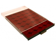 Монетный бокс с 30 круглыми ячейками для CAPS 30.5 и CAPS 31. Диаметр углублений 37 мм. Наружный формат 236x303x20 мм.