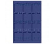 Планшет для 24 монет с квадратными ячейками 47x47 мм. Цвет синий, наружный формат 334x220 мм. Подходит к кейсам KO3, KO6 и папке MK 4 TAB LEER.