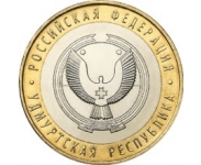 Реверс: изображение герба Удмуртской Республики, по окружности - надписи: вверху - "РОССИЙСКАЯ ФЕДЕРАЦИЯ", внизу - "УДМУРТСКАЯ РЕСПУБЛИКА".