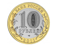 Аверс: в центре диска - обозначение достоинства монеты "10 РУБЛЕЙ". Внутри цифры "0" - скрытые, видимые поочередно при изменении угла зрения изображения цифры "10" и надписи "РУБ". В нижней части диска - товарный знак монетного двора. В верхней части кольца по окружности - надпись: "БАНК РОССИИ", в нижней - дата "2011", слева и справа - стилизованные ветви растений, переходящие на диск.