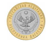 Реверс: изображение герба Республики Дагестан, по окружности – надписи: вверху – "РОССИЙСКАЯ ФЕДЕРАЦИЯ", внизу – "РЕСПУБЛИКА ДАГЕСТАН".
