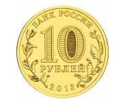Аверс: в центре диска – обозначение достоинства монеты "10 РУБЛЕЙ". Внутри цифры "0" – скрытые, видимые поочередно при изменении угла зрения изображения цифры "10" и надписи "РУБ". В нижней части диска – товарный знак монетного двора. В верхней части кольца по окружности - надпись: "БАНК РОССИИ", в нижней – дата "2013", слева и справа – стилизованные ветви растений, переходящие на диск.