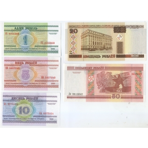 Белоруссия набор 5 банкнот 2000 1, 5, 10, 20, 50 рублей Пресс