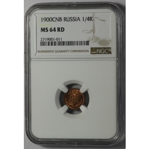 1/4 копейки 1900 MS 64 RD