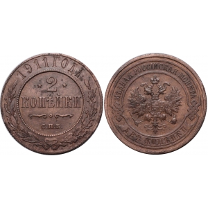 Главная  >  Магазин  >  Монеты  >  Царская Россия  >  Николай II (1894-1917)  >  2 копейки 1895-1916  >  2 копейки 1911 СПБ