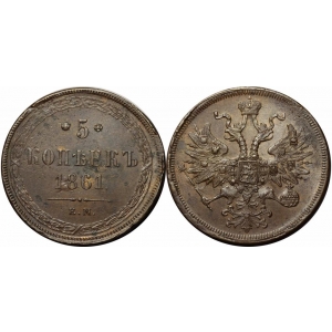 Главная  >  Магазин  >  Монеты  >  Царская Россия  >  Александр II (1854-1881)  >  5 копеек медь 1855-1880  >  5 копеек 1861 ЕМ без копья