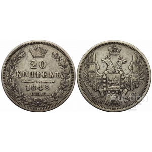 Главная  >  Магазин  >  Монеты  >  Царская Россия  >  Николай I (1826-1855)  >  20 копеек 1848 HI орел 1849-1851