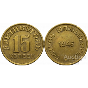 Шпицберген Арктикуголь 15 копеек 1946 ОРИГИНАЛ