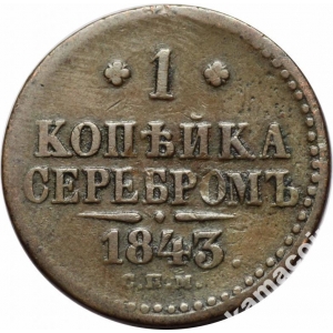 Копейка 1843 СПМ Нечастая!