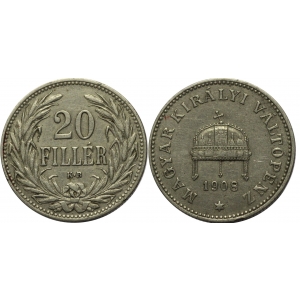 Венгрия 20 филлер 1908
