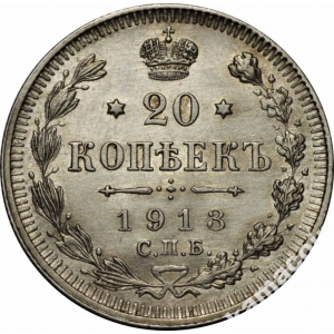Главная  >  Магазин  >  Монеты  >  Царская Россия  >    >   20 копеек 1913 ВС