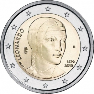 2 евро 2019 Италия Леонардо да Винчи