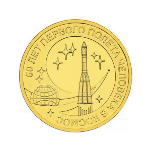 10 рублей 2011 50 лет первого полета человека в космос Мешковая