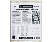 Лист изготовлен из пленки повышенной прозрачности. 35 ячеек с клапаном для монет диаметром до 30 мм. Наружный формат 200x250 мм. Подходит к папкам-переплётам Optima.