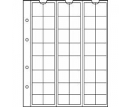 Лист изготовлен из пленки повышенной прозрачности. 30 ячеек с клапаном для монет диаметром до 30 мм. Наружный формат 192x214 мм. Подходит к папкам-переплётам Numis.