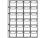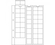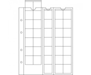Лист изготовлен из пленки повышенной прозрачности. 24 ячейки с клапаном для монет диаметром до 35 мм. Наружный формат 200x250 мм. Подходит к папкам-переплётам Optima.