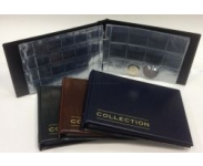Альбом с кольцевым механизмом. Содержит 10 листов по 24 ячейки каждый для монет диаметром до 31 мм. Цвета: синий, бордовый, чёрный и тёмно-коричневый. Наружный формат 240x177 мм. Производитель: Россия