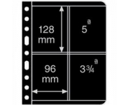 Листы с чёрным фоном позволяют просматривать коллекционный материал только с одной стороны. 4 кармана с каждой стороны листа размером 96x128 мм. Наружный формат 216x280 мм.