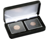 Коробка изготовлена из металла и обтянута чёрной искусственной кожей. Предназначена для хранения двух монет в капсулах Quadrum.